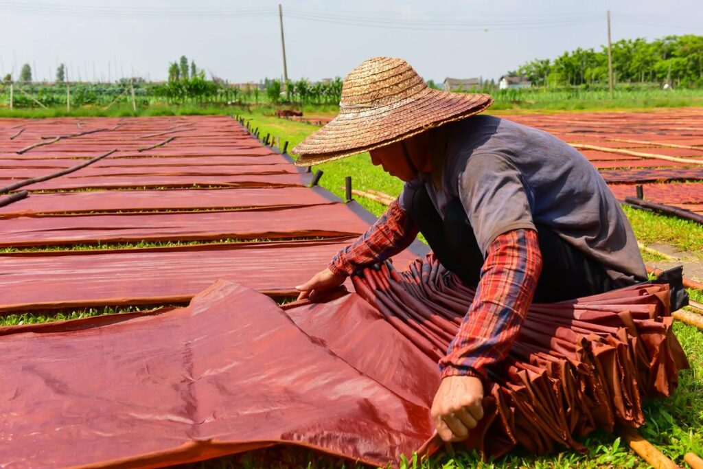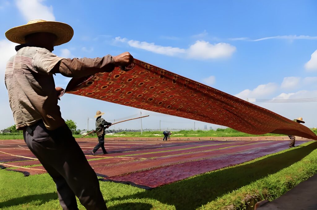 - Sprinkling with Dioscorea Cirrhosa Juice: During the drying process, the juice is repeatedly sprinkled onto the fabric to enhance the dyeing effect.