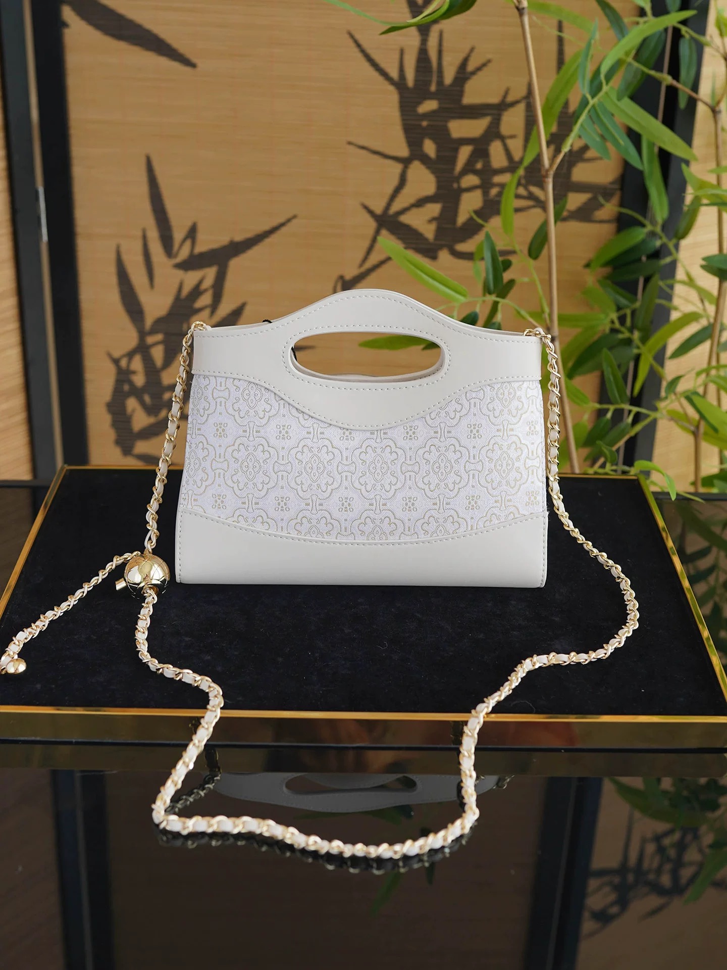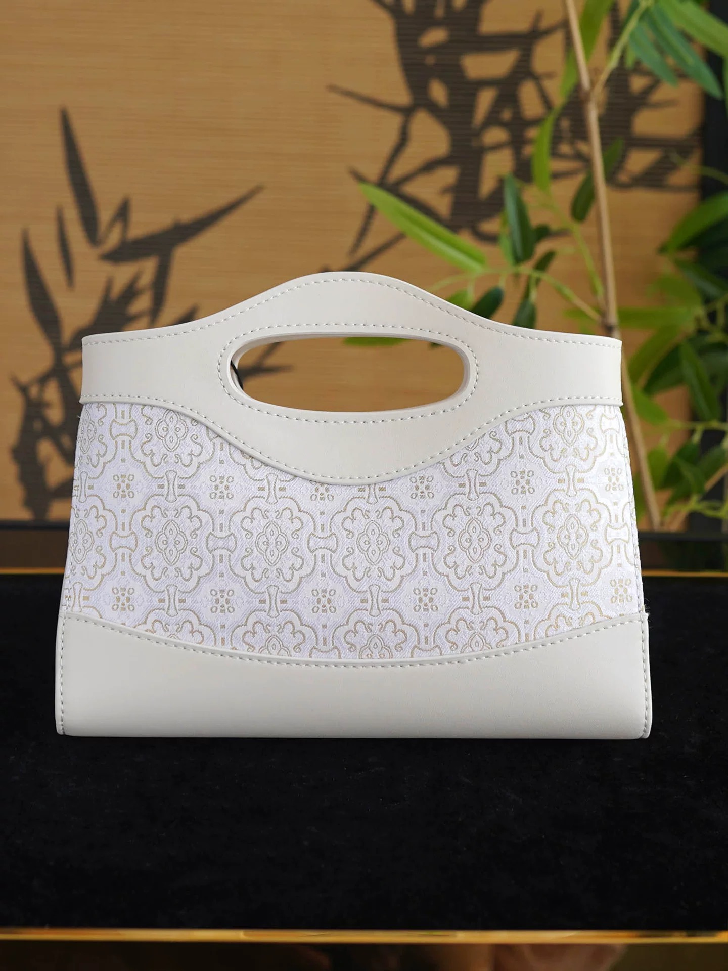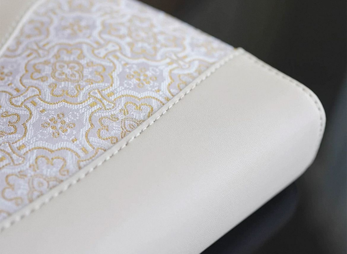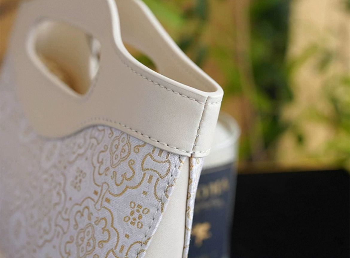 This crossbody bag seamlessly combines the timeless elegance of Song Brocade (100% silk) with the strength and refinement of genuine cowhide leather. The central body is woven using authentic Song Dynasty jacquard techniques, renowned for their intricate silk layering and vibrant luster. Framing the brocade, the hand-stitched cowhide leather handles and trims provide structural support and a touch of contemporary edge.